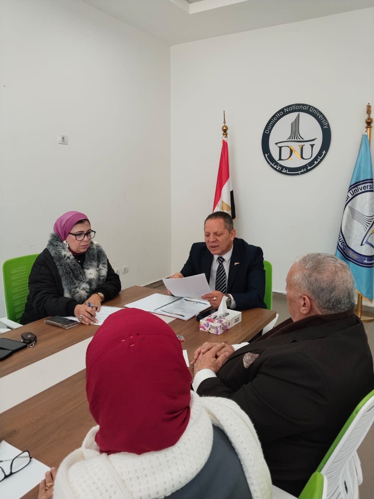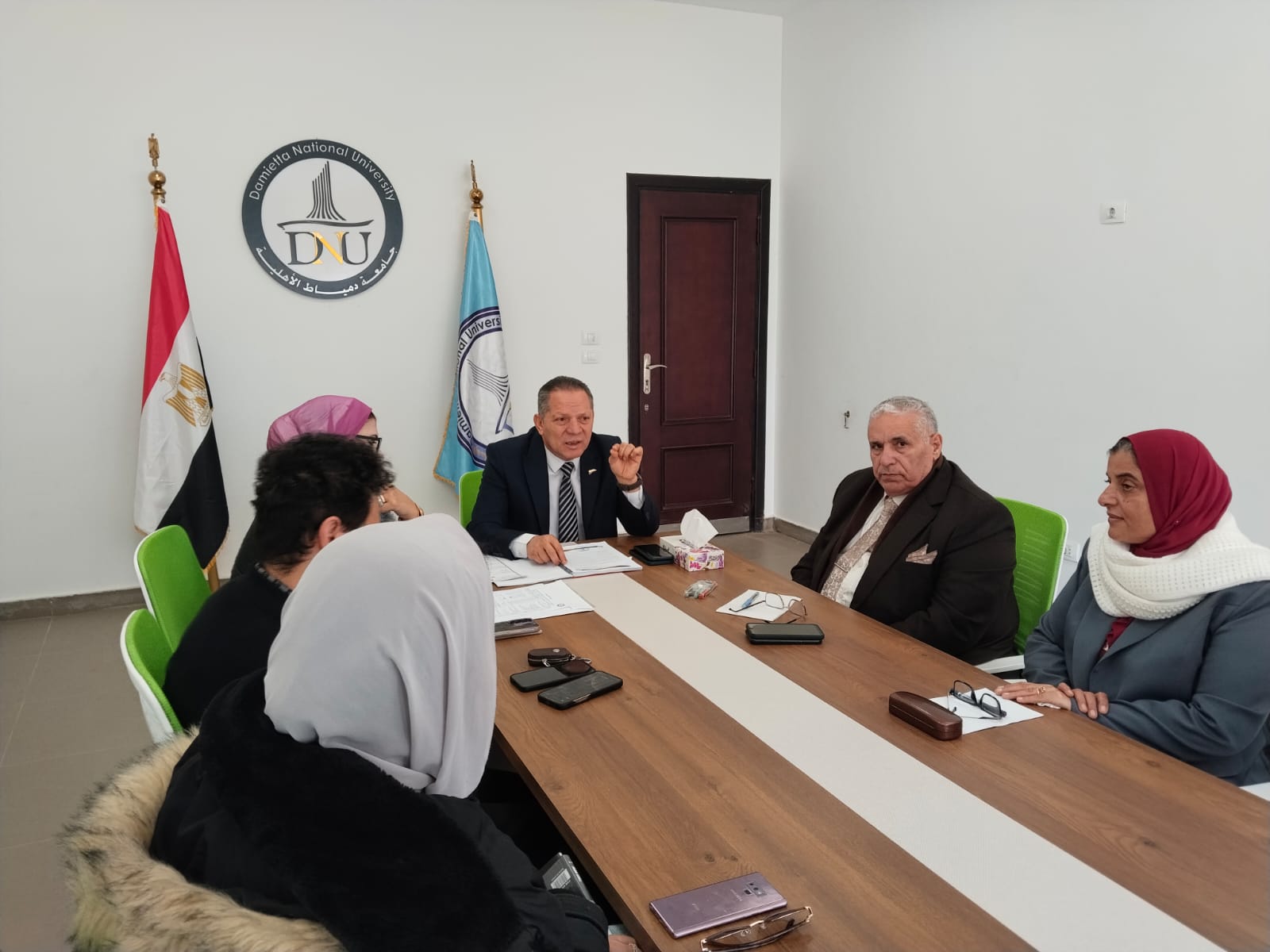 اجتماع رئيس جامعة دمياط الأهلية مع مديري برامج كليات الجامعة لمتابعة سير العملية التعليمية
